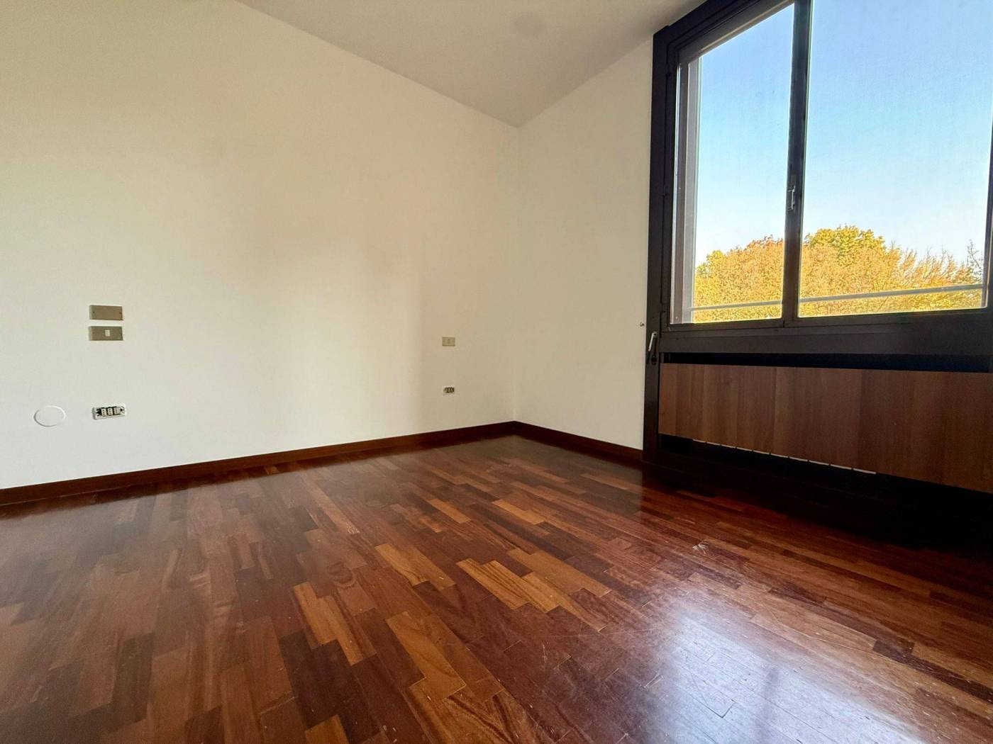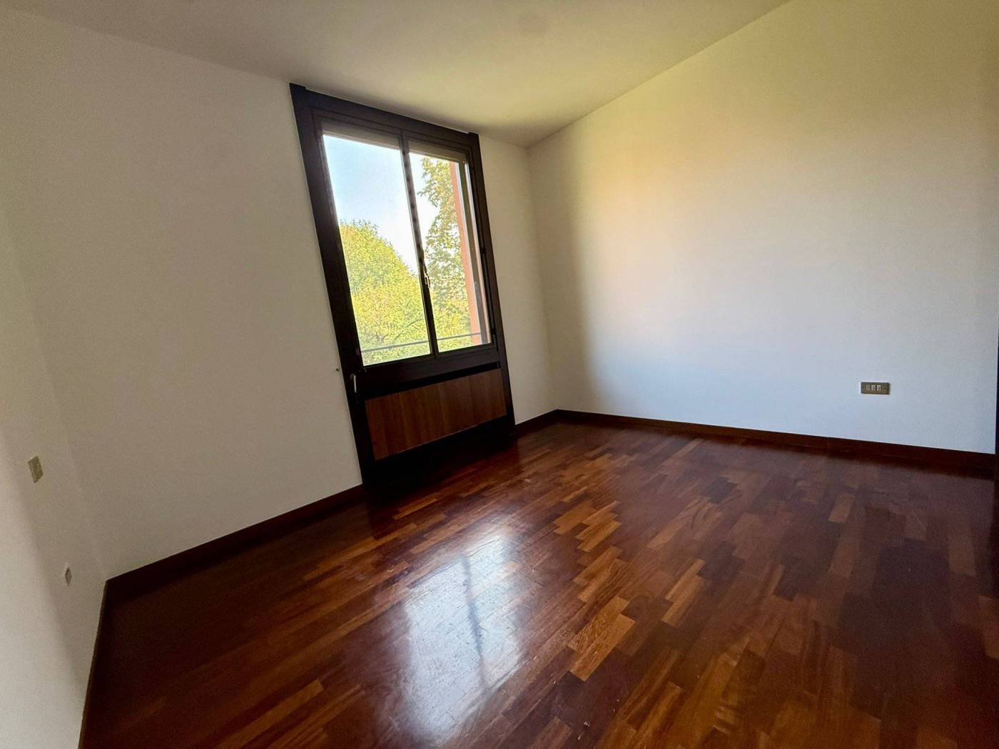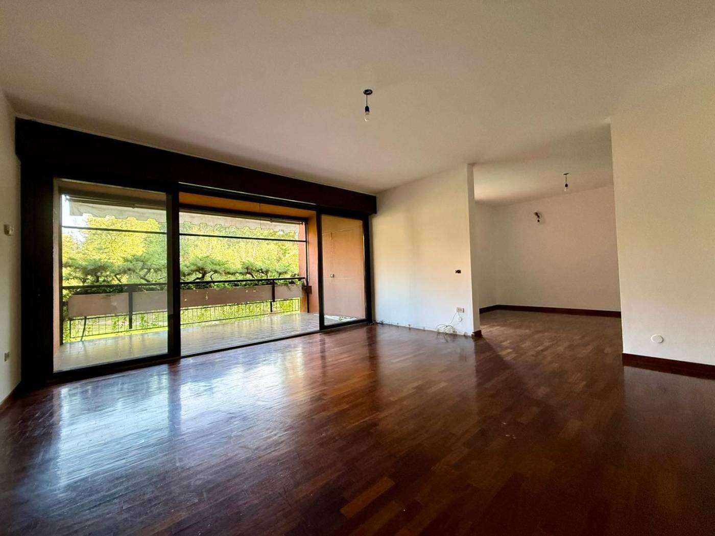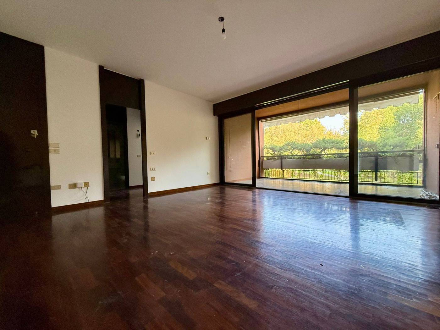 L'appartamento di 4 locali si presenta in ottime condizioni con parquet in tutta la casa, i bagni sono di capitolato ma in ottime condizioni. L'immobile al secondo piano è così composto ingresso con ampio soggiorno doppio, loggia fronte parco con esposizione ad est, cucina abitabile con balcone di servizio, due camere da letto, due bagni di cui uno cieco, una cantina al piano terra e la possibilità di un box medio pari ad un valore di 30.000,00Eu..