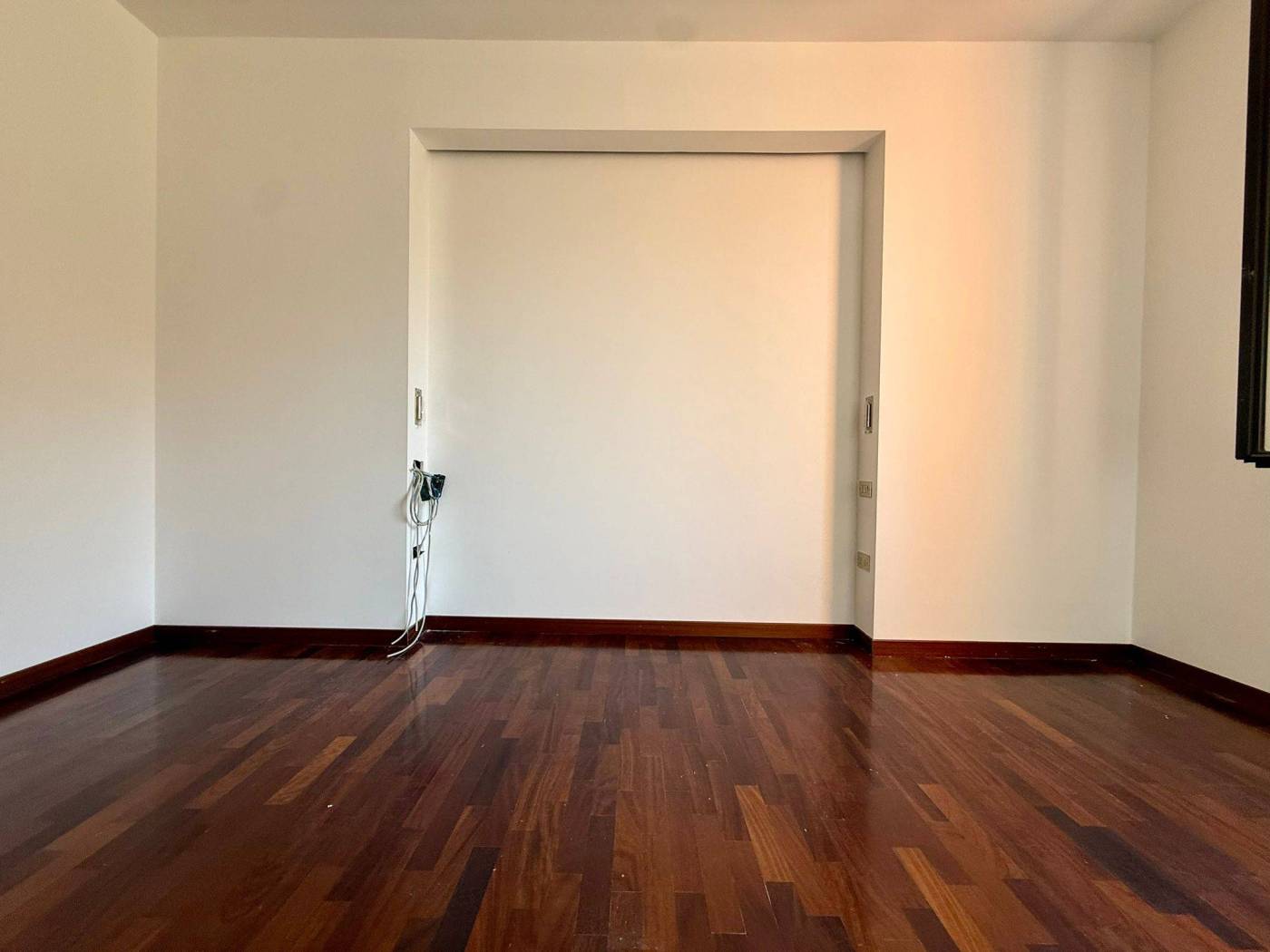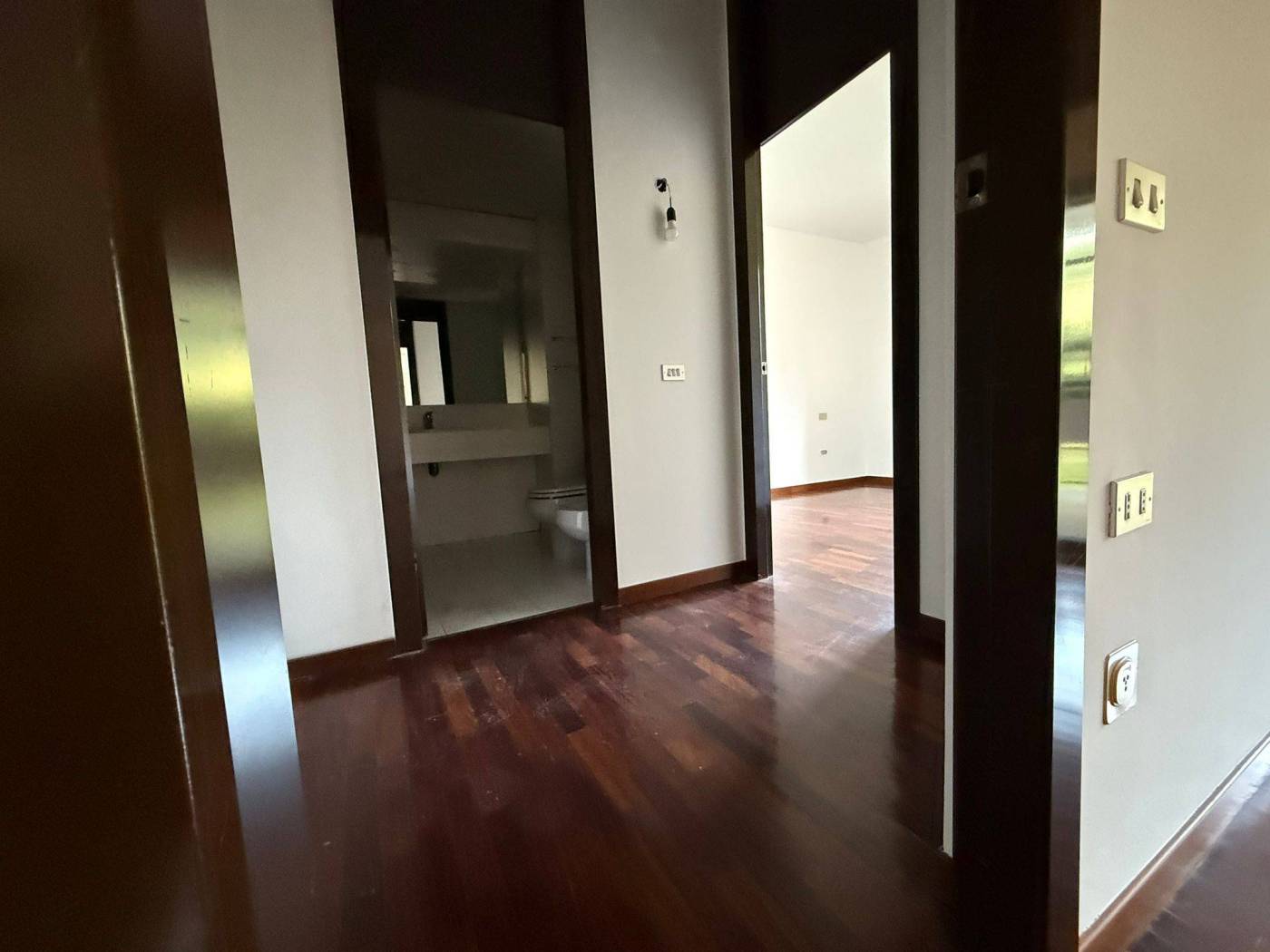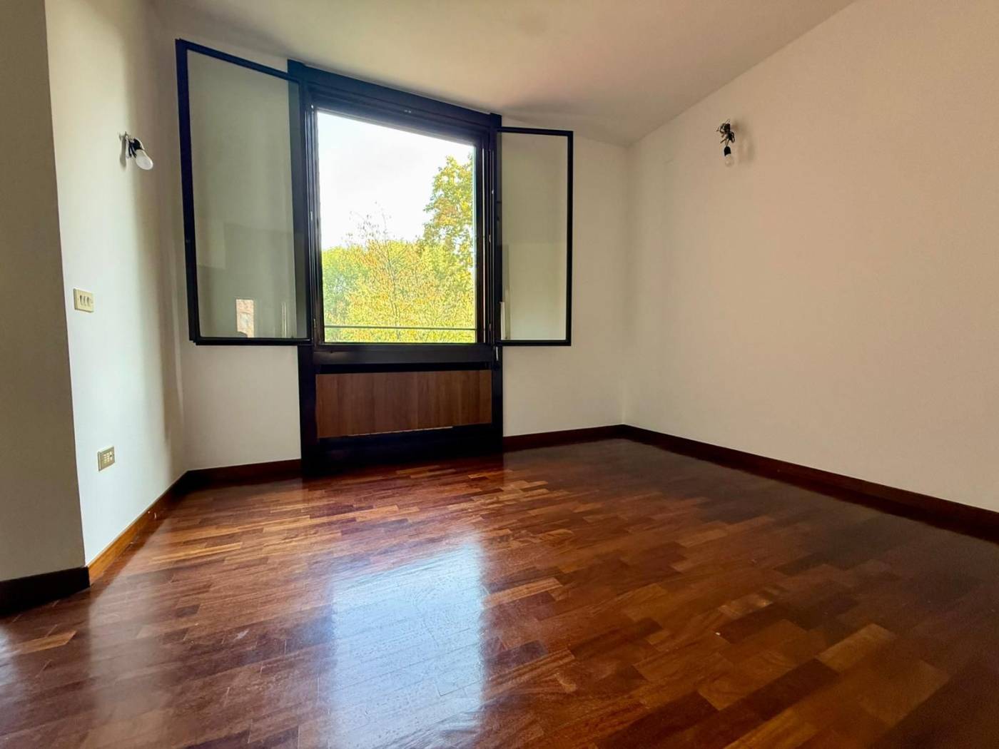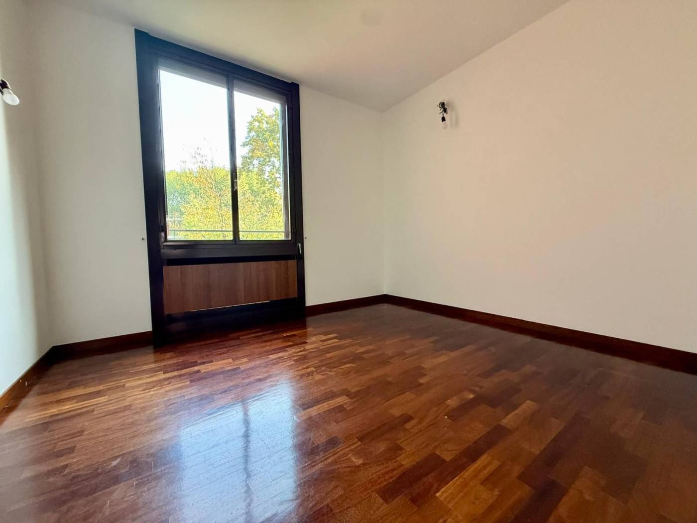 L'appartamento di 4 locali si presenta in ottime condizioni con parquet in tutta la casa, i bagni sono di capitolato ma in ottime condizioni. L'immobile al secondo piano è così composto ingresso con ampio soggiorno doppio, loggia fronte parco con esposizione ad est, cucina abitabile con balcone di servizio, due camere da letto, due bagni di cui uno cieco, una cantina al piano terra e la possibilità di un box medio pari ad un valore di 30.000,00Eu..